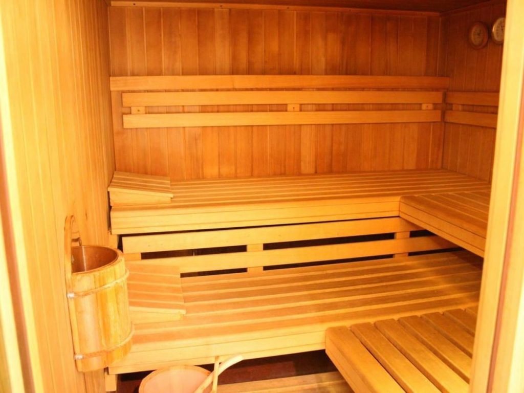 A fitness room with sauna completes the offer.