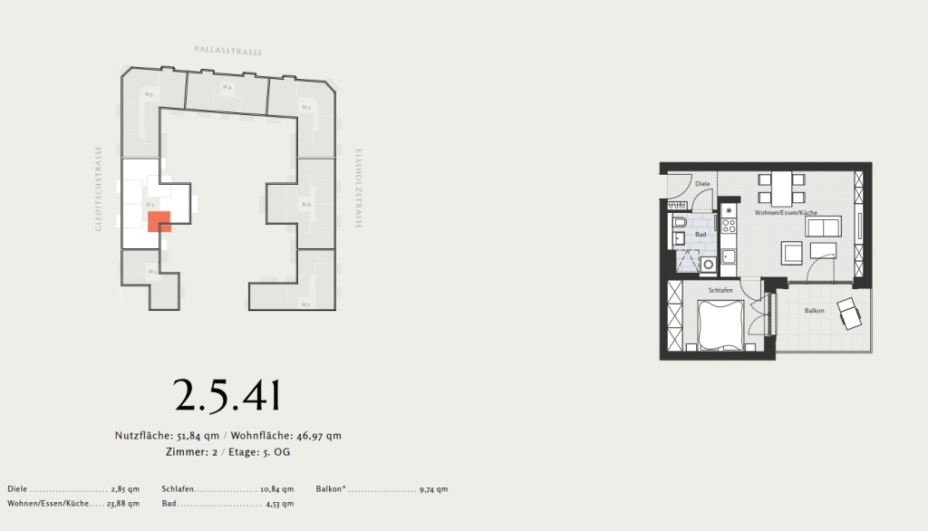 The residential complex is located in the historical part of Berlin, in the Schöneberg district. Nearby are St. Matthias Church, Heinrich von Kleist Park, Berlin Chamber Court and other historical buildings. In doing so, the new homes will be integrated with the existing buildings, creating the feeling that they have always been there.