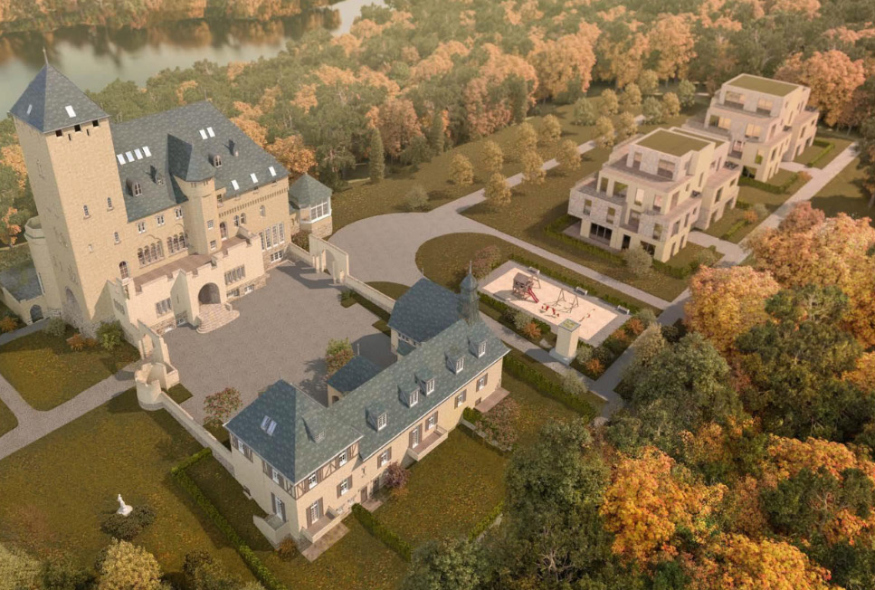 Two buildings constructed in the immediate vicinity of the Neue Hakeburg. Both buildings are almost identical – differing only slightly in terms of construction and apartment layout. They integrate excellently into the ensemble of the historic Neue Hakeburg and are surrounded by a large nature reserve.
